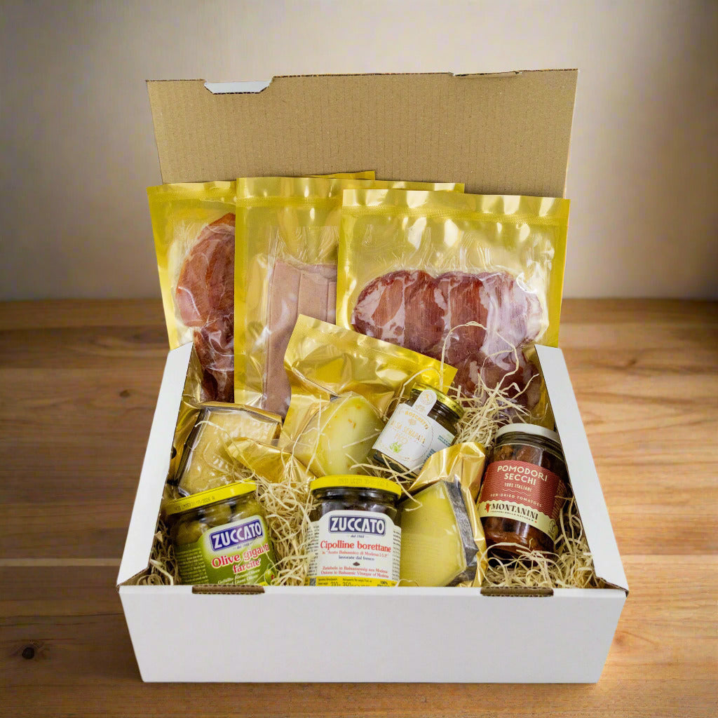 Dopřejte si jedinečný zážitek s boxem plným italských delikates, který je ideální pro večerní romantiku ve dvou či na posezení. V elegantní krabici najdete tři druhy sýrů s jemnými i výraznějšími tóny, tři druhy vybraných uzenin, chutney, balsamikové cibulky, sušená rajčata a olivy.