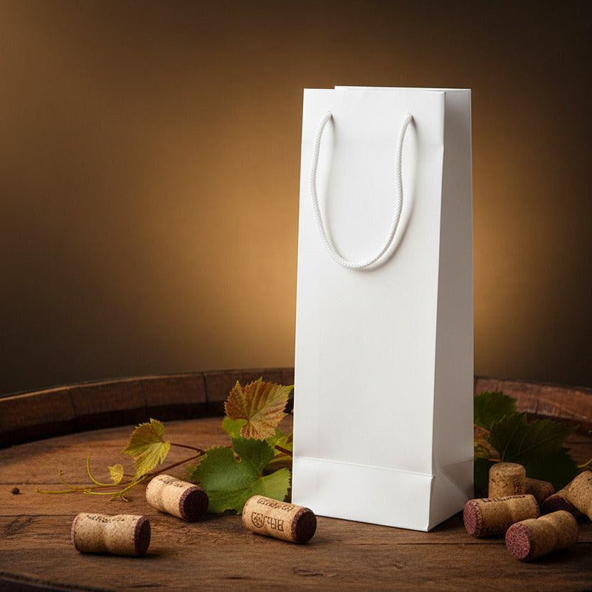 Elegantní a stylová dárková taška na víno v bílé barvě je ideálním řešením pro darování lahve vína při jakékoliv příležitosti. Taška je vyrobena z pevného a odolného materiálu, který zajistí bezpečné přenášení lahve. Design je doplněn kvalitním poutkem, které je pohodlné do ruky a zaručuje snadné a bezpečné přenášení. Tato taška dodá vašemu daru luxusní nádech a je vhodná nejen pro víno, ale i pro další lahvové dárky. Perfektní volba pro oslavy, večírky, svatby či jako elegantní dárek pro vaše blízké.