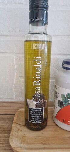 Casa Rinaldi, je nabízený jako nejlepší italský extra panenský olivový olej, který je získaný přímo z nejlepších italských oliv a vyrobený výhradně mechanickými prostředky, což zajišťuje úplnou čistotu. Tento extra panenský olivový olej má žlutou barvu a je obohacen o vločky černého lanýže. V chuti se snoubí ovocná chuť evropských oliv s intenzitou lanýžů.