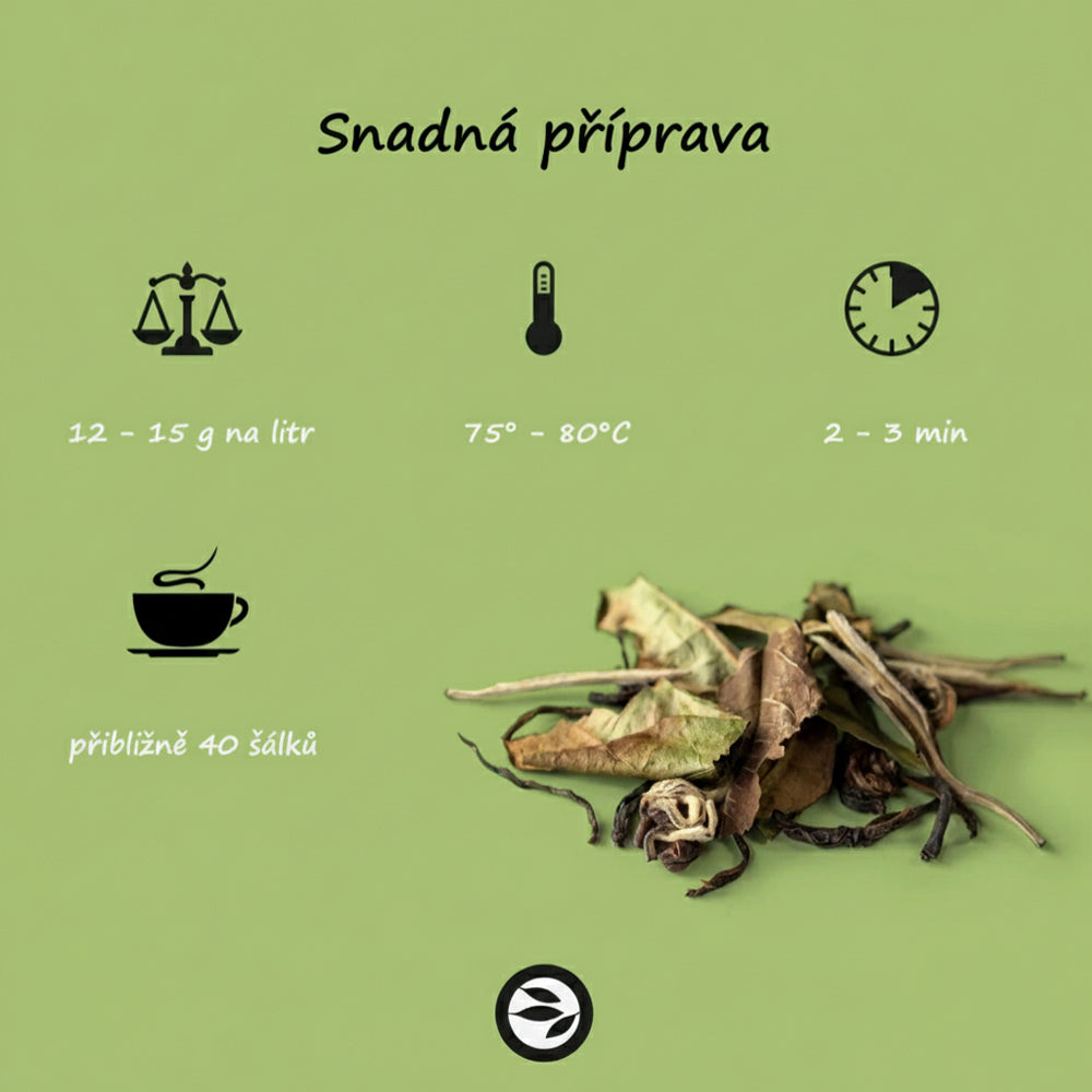 Objevte harmonii pravého jasmínového čaje připravovaného tradiční čínskou metodou. Tento čaj neobsahuje žádné květy ani umělá aromata – pouze listy, které získaly svou vůni a chuť přirozeným aromatizováním jasmínovými květy. Výsledkem je jemný, květinový a vyvážený nálev s delikátní vůní, která zklidní mysl i tělo.