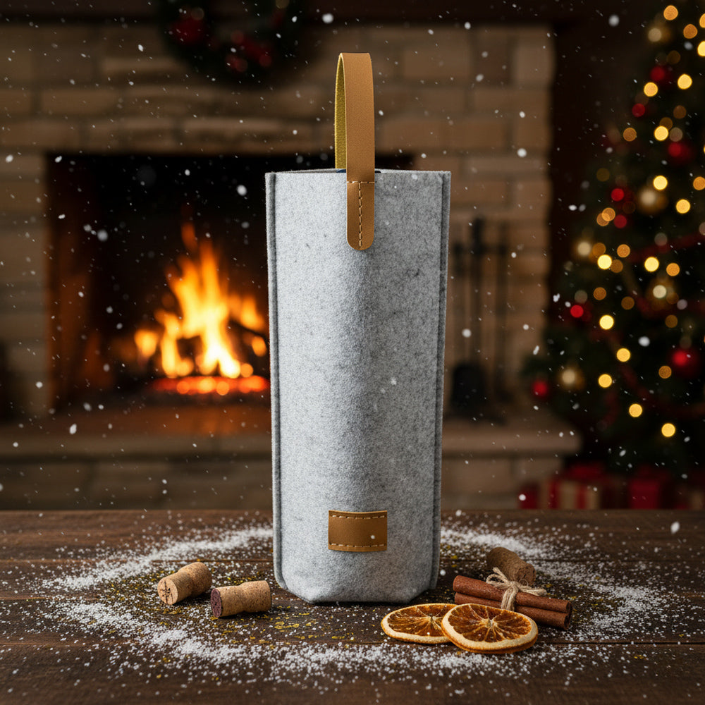Luxusní dárková taška na víno (šedá s koženým úchopem a detaily)