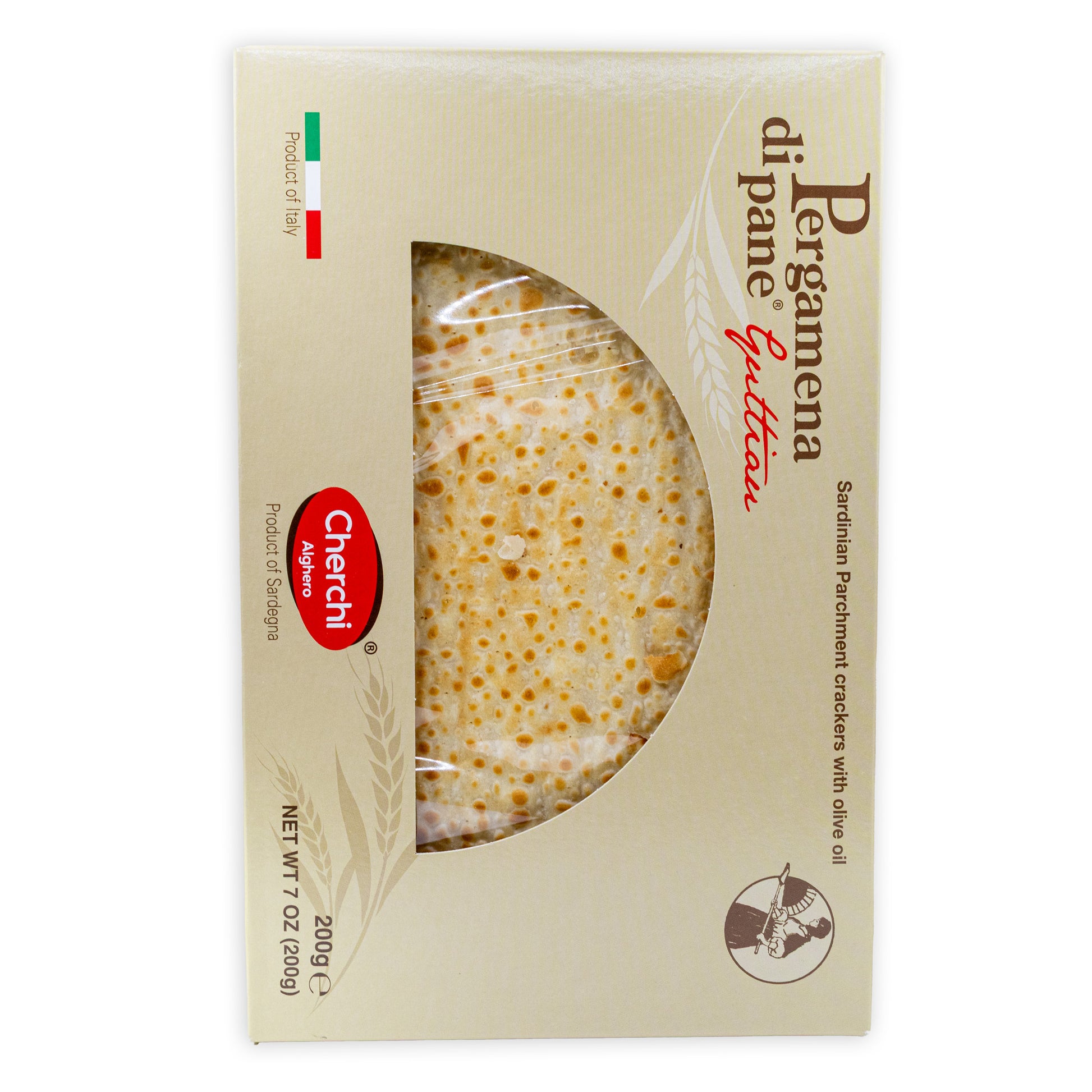 Tradiční sardinské křupavé sušenky z tenkého pečiva. Ideální jako chuťovka k vínu, sýru nebo jako lehká svačina. Jemná textura a autentická středomořská chuť přináší pravý kousek Sardinie přímo na váš stůl.