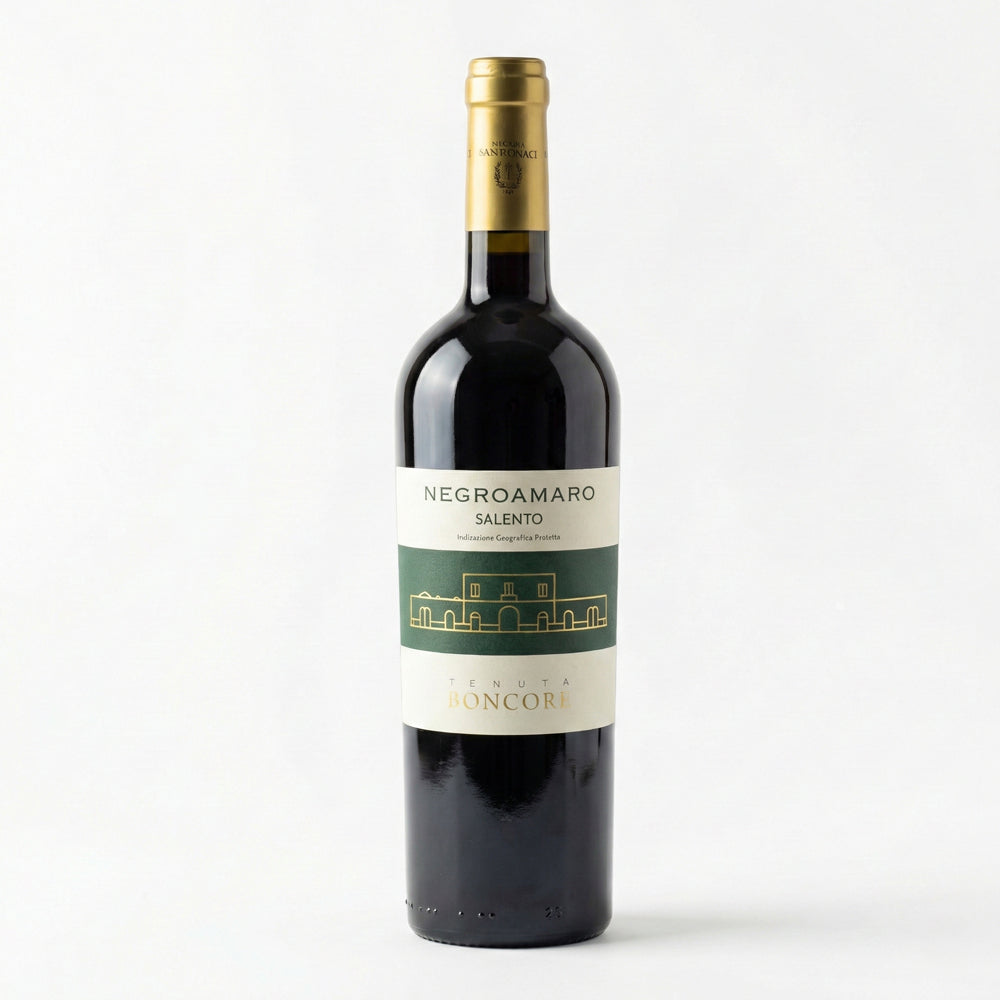 Tenuta Boncore Negroamaro je autentické červené víno z jižní Itálie, konkrétně z oblasti Salento v Apulii, kde má odrůda Negroamaro své historické kořeny. Víno vyjadřuje typický středomořský charakter regionu – slunce, teplo a bohatost chutí – v moderním, velmi dobře pitelném stylu.