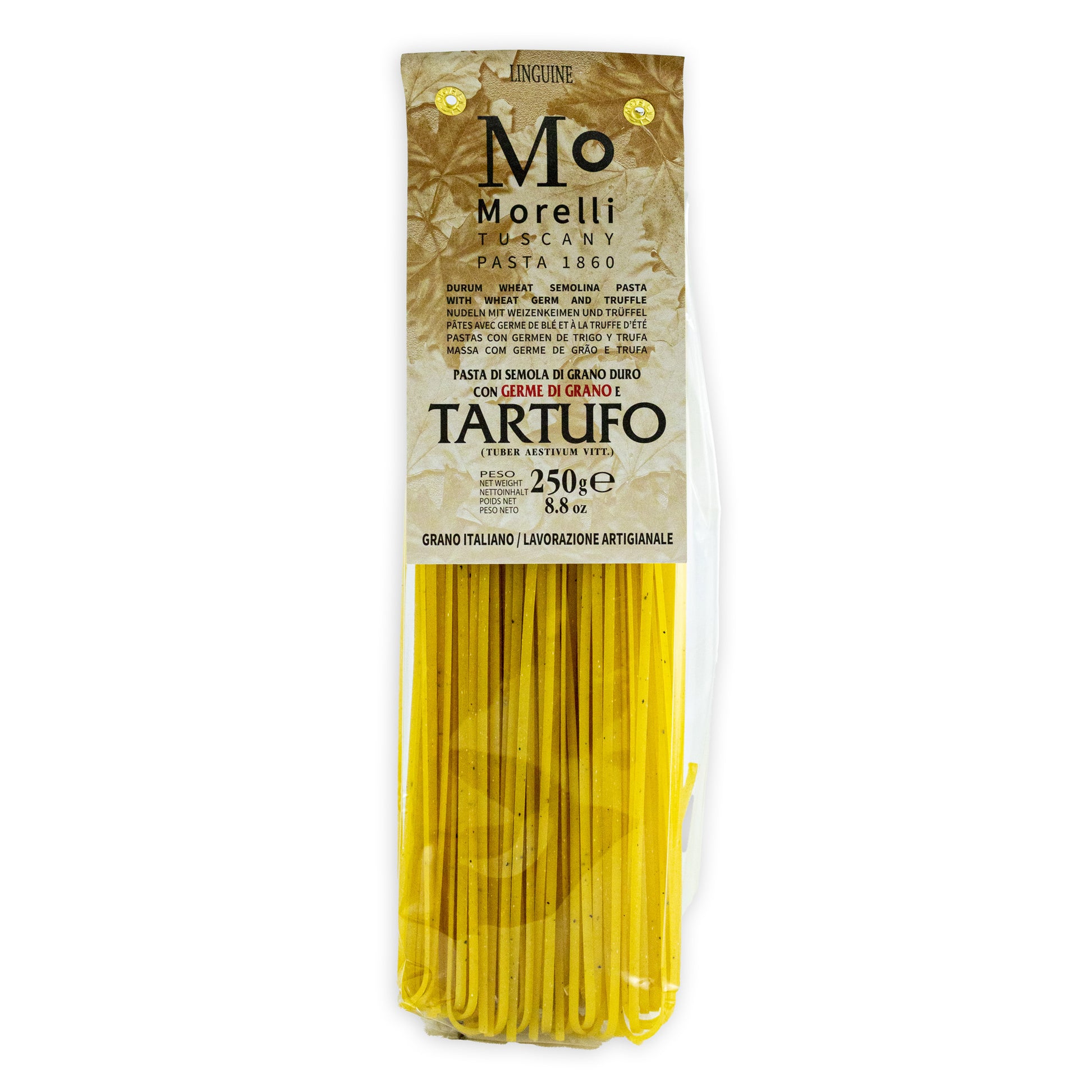 Exkluzivní italské těstoviny Linguine obohacené o jemné aroma pravých lanýžů. Díky své ploché a tenké struktuře se skvěle pojí s máslovými, smetanovými i lehkými olejovými omáčkami. Perfektní volba pro gurmánské zážitky a slavnostní příležitosti.